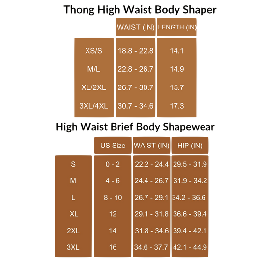 Thong High Waist Body Shaper Sizing Chart